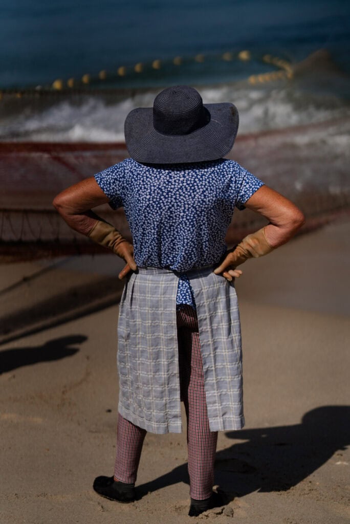 Na vizinha Praia da Tocha, no concelho de Cantanhede, o contraste entre a herança e a realidade contemporânea mostra-se ainda mais nítido e comovente. Ali, Judite Gonçalves herdou a companha do pai após um trágico acidente no mar. É uma das raras mulheres a comandar uma arte xávega, não no barco, mas na coordenação em terra — uma presença firme e serena na areia, a gerir logísticas, vendas e o moral da equipa.